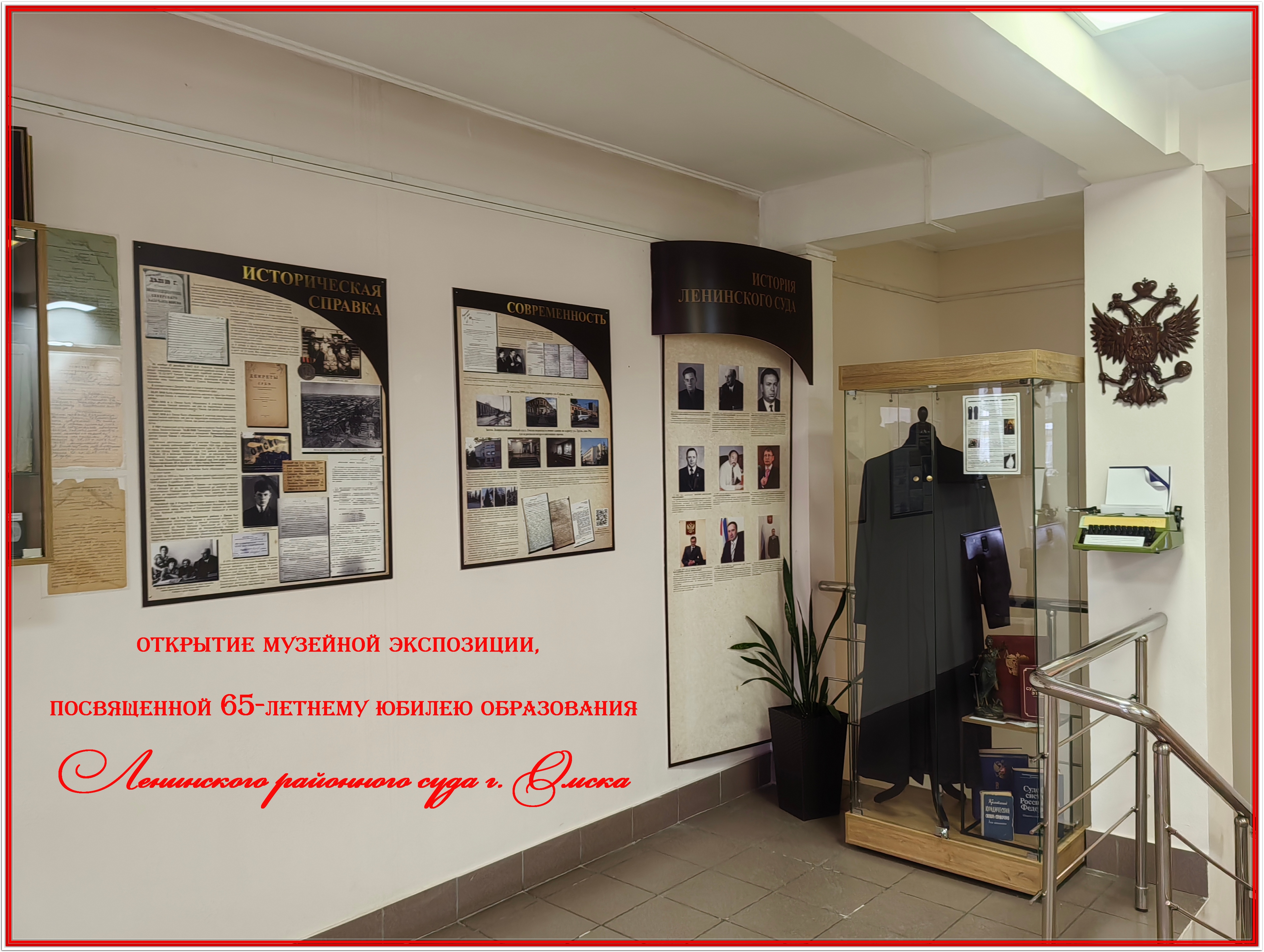 Музейную экспозицию может увидеть каждый посетитель суда, поскольку уголок истории Ленинского районного суда г. Омска находится в фойе второго этажа здания.